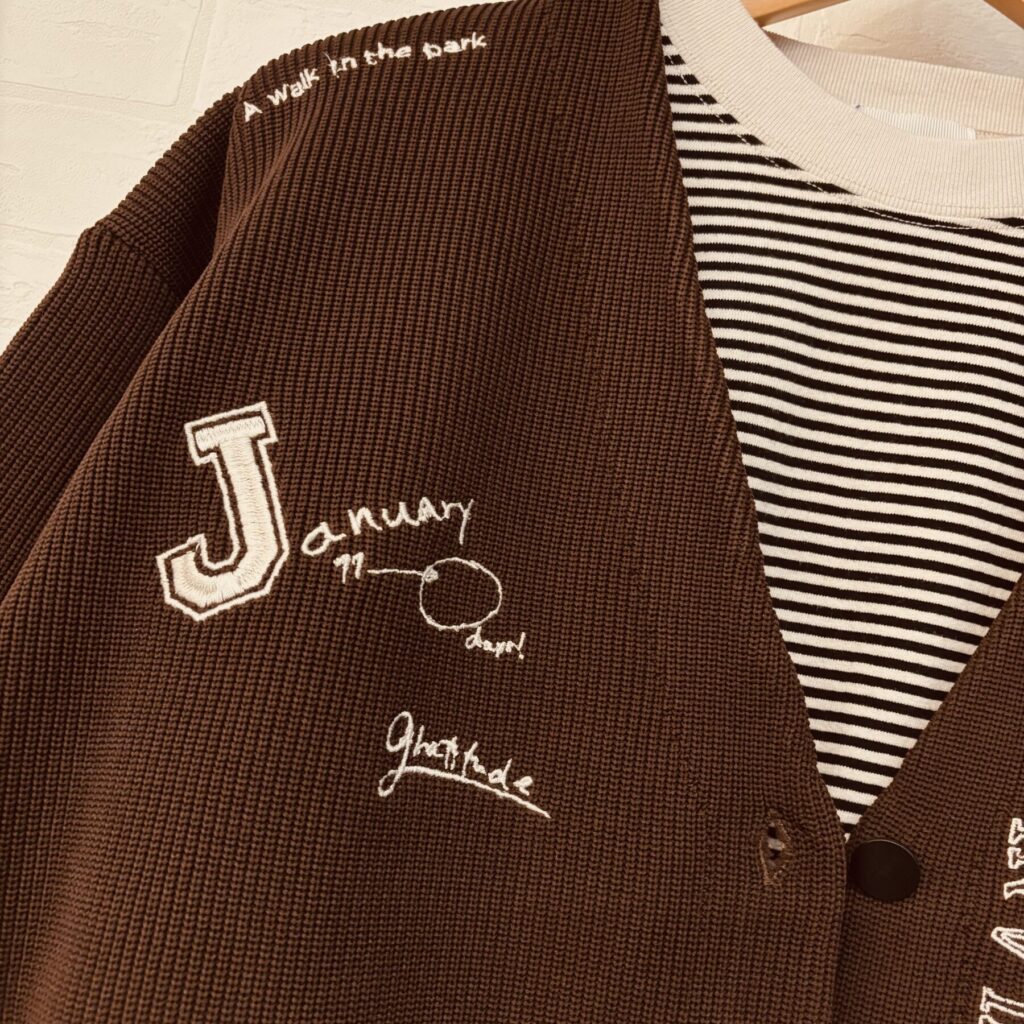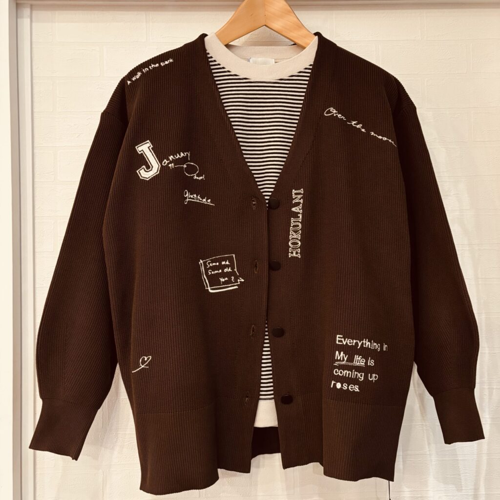 ロゴ⭐︎カーデ 2025.10.02 アイテム紹介 2025.10.02 CLOCHEより ロゴ使いが可愛いニットカーデ 13,200円 軽いポリエステルニット ざっくりオーバーサイズです。 色違いのブラック スヤスヤ………(^^) 本日のディスプレー ショートベスト&スカート 関連記事 袖リボン 赤と黒 HAIDA バッグ インディゴブルー*ワンピース