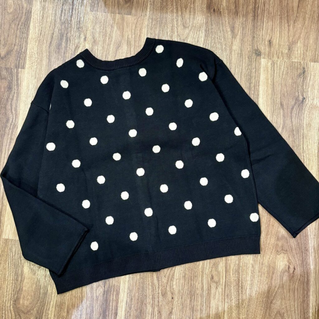 ドット柄カーデ 2025.10.12 アイテム紹介 2025.10.12 mao made より 白黒ドットのカーディガン 15,400円 袖口折り返すと、ブルーの配色が可愛い‼️ 2way仕様なので、後ろボタンで着ることもできます 長袖Tシャツ ジップアップ★サロペット 関連記事 ループヤーン✴︎ベスト ひらひらテープ使い 時計プリント シャツワンピース&スカート