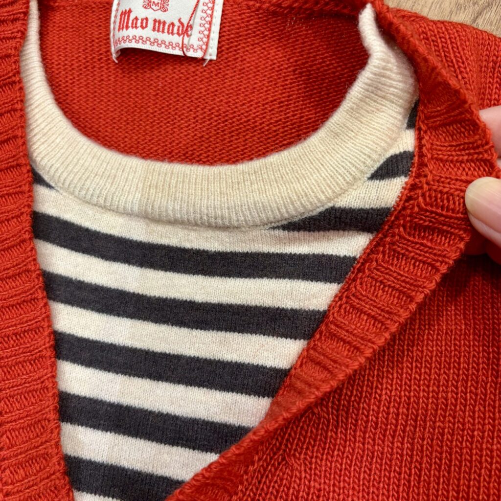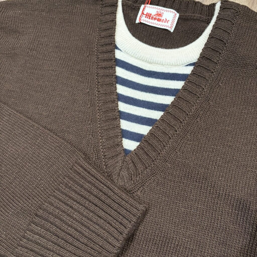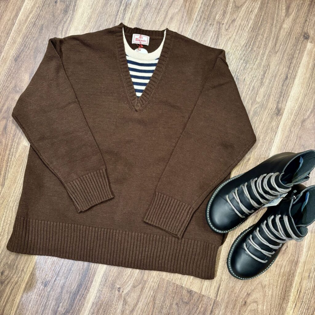 重ね着風Vネックニット 2025.11.08 アイテム紹介 2025.11.08 mao made より Vネックのざっくりニット 15,180円 ボーダー部分は縫い付けなので、 一枚で着てるのに重ね着風〜! 色違いのブラウンもシックでいい感じです(^^) ダウン⭐︎ショート丈ベスト 関連記事 ギンガムチェック 夏シャツ入荷☆ ピューリタンカラー*シャツ 柄 on 柄