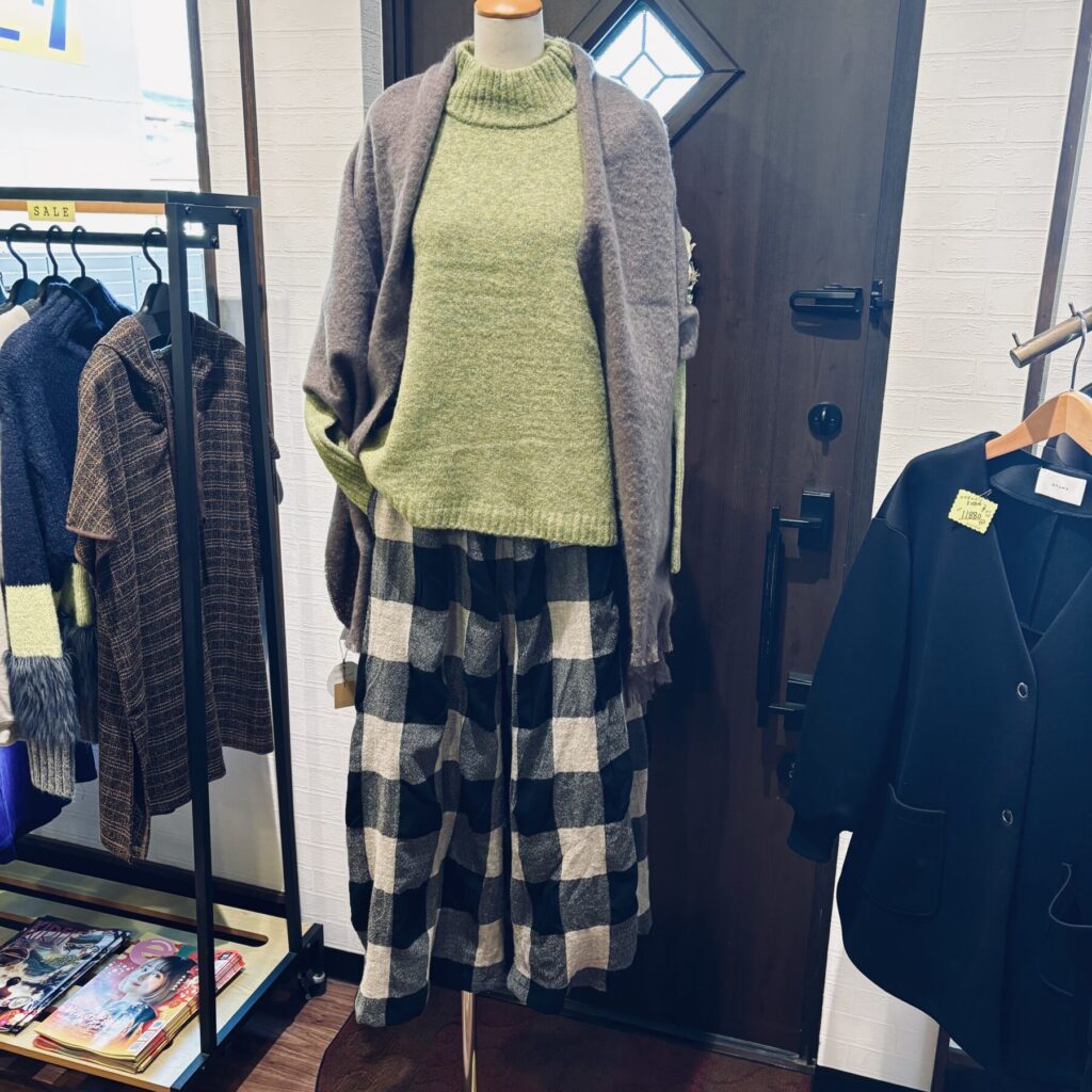 チェックパンツコーデ 2026.01.15 アイテム紹介 2026.01.15 モノトーンのブロックチェックが目を惹くコーデ 優しいグリーンのニット 14,080円 → 11,264円 ふわふわストール 2,750円 ウールガーゼのチェックパンツ 15,950円 → 11,165円 キーネックコート 関連記事 ジャンスカ&ジャケット 柄ニット *** クシュクシュ衿 ハート柄