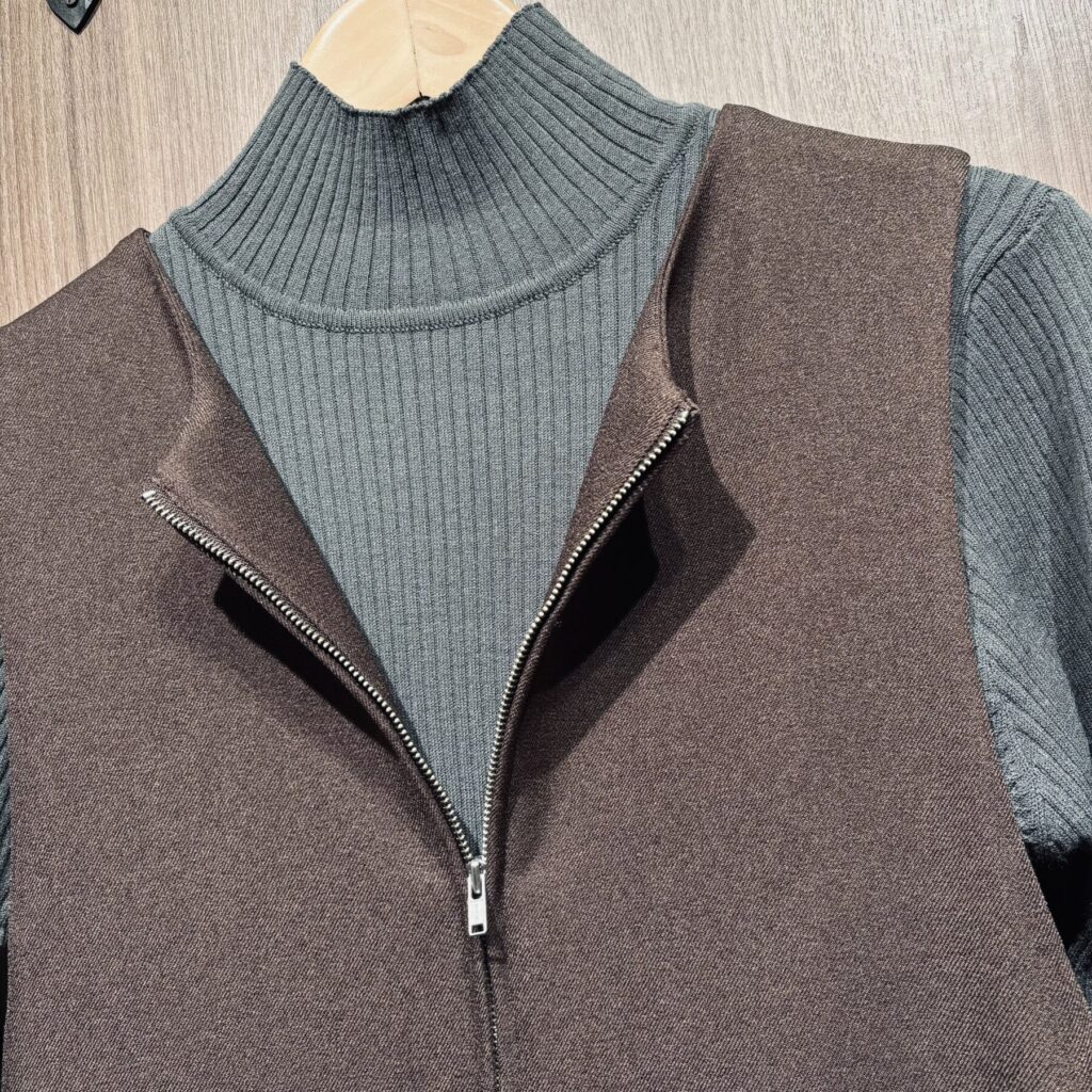 インに合わせたリブニットは袖口のボタンが素敵