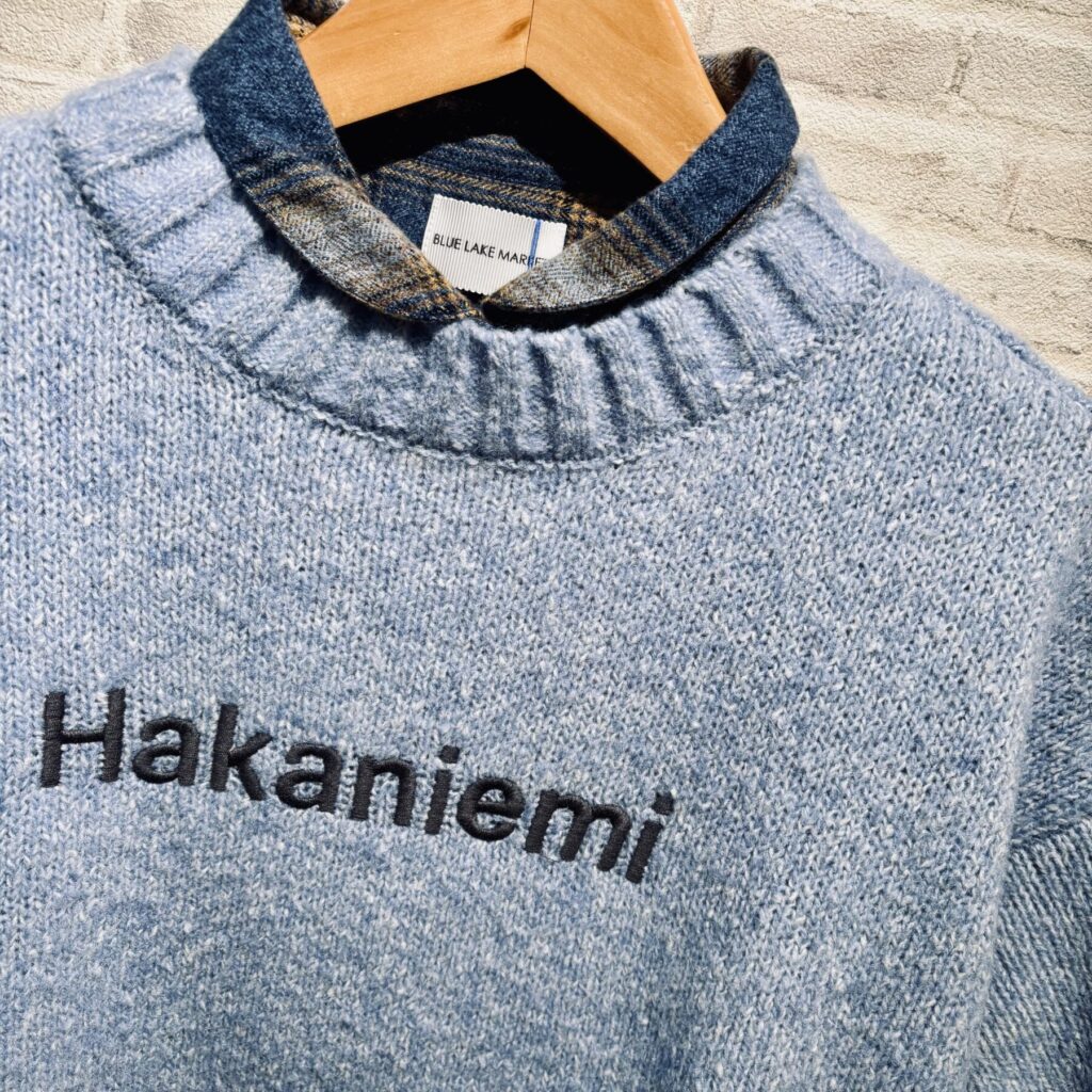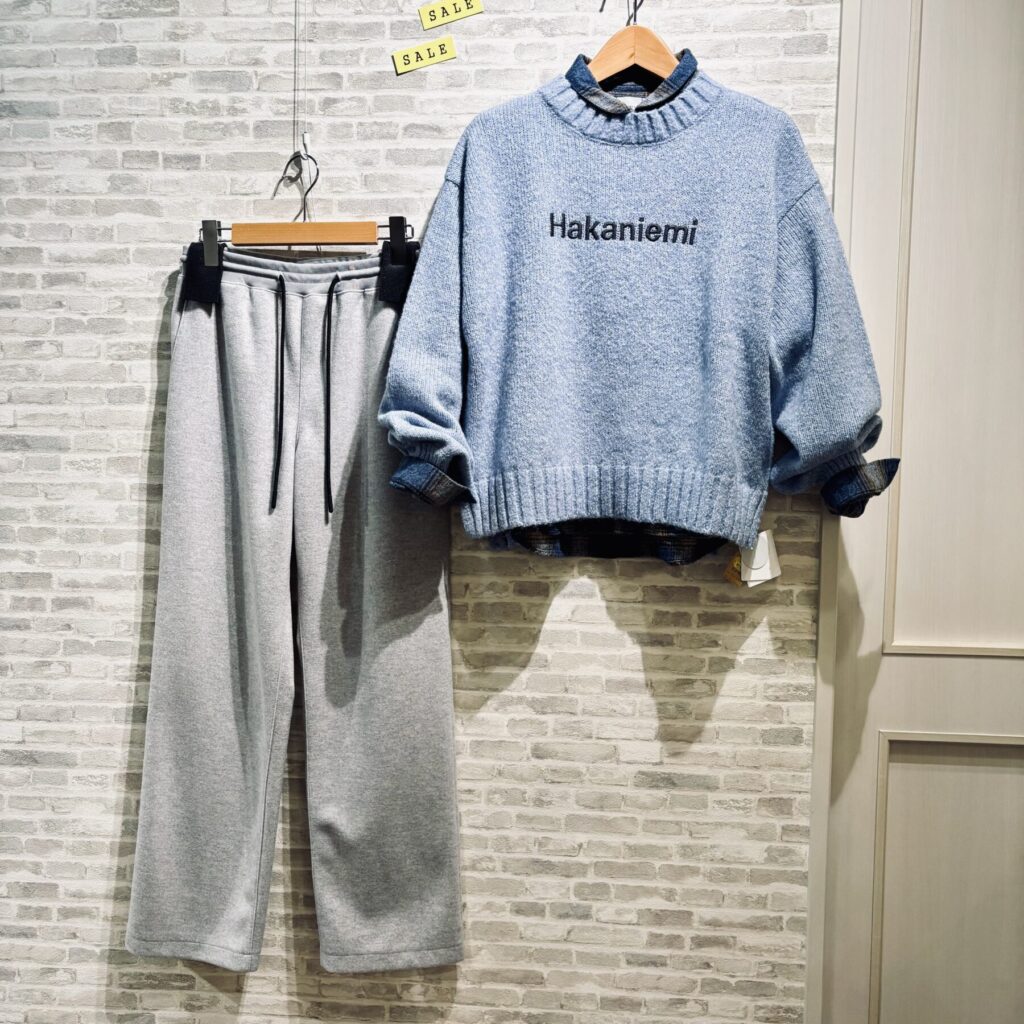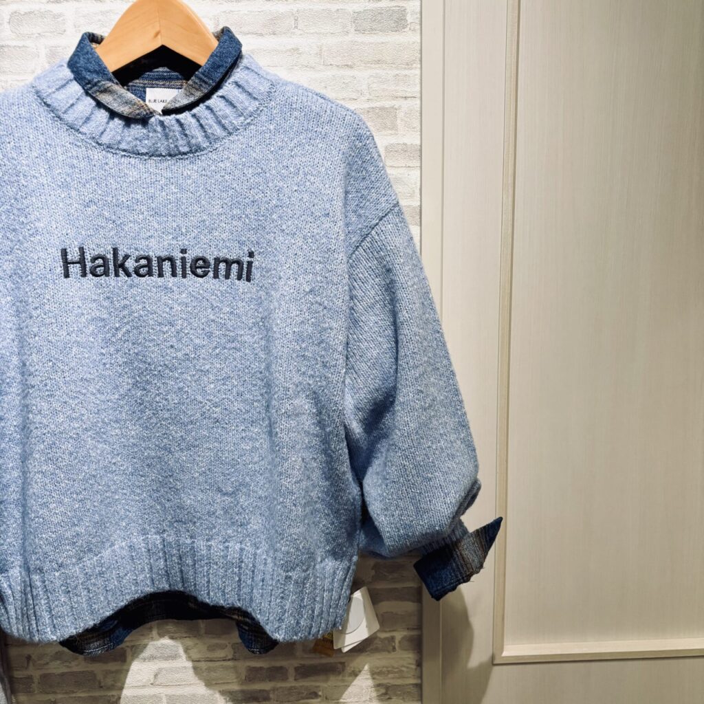 爽やかブルーのロゴニットのコーデです・:*.:+