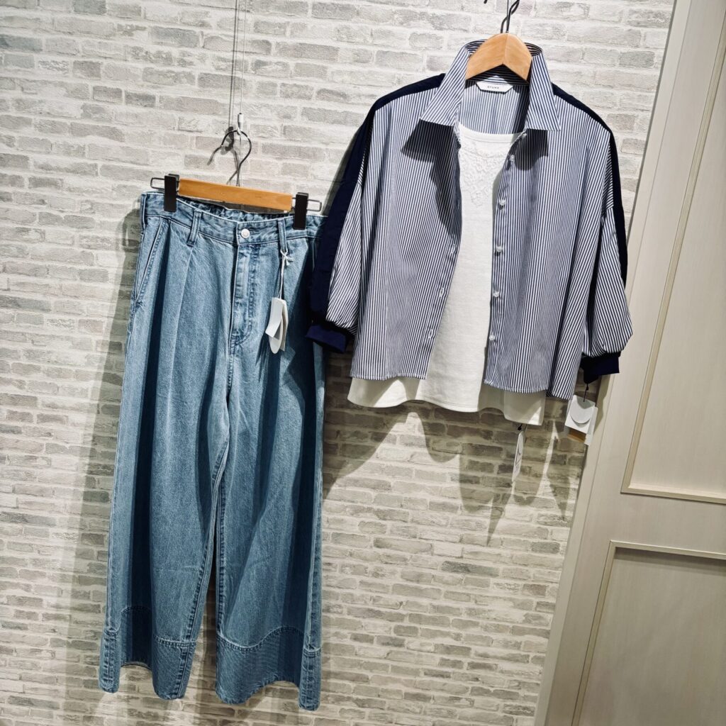 デニムは裾の切り替えがアクセント