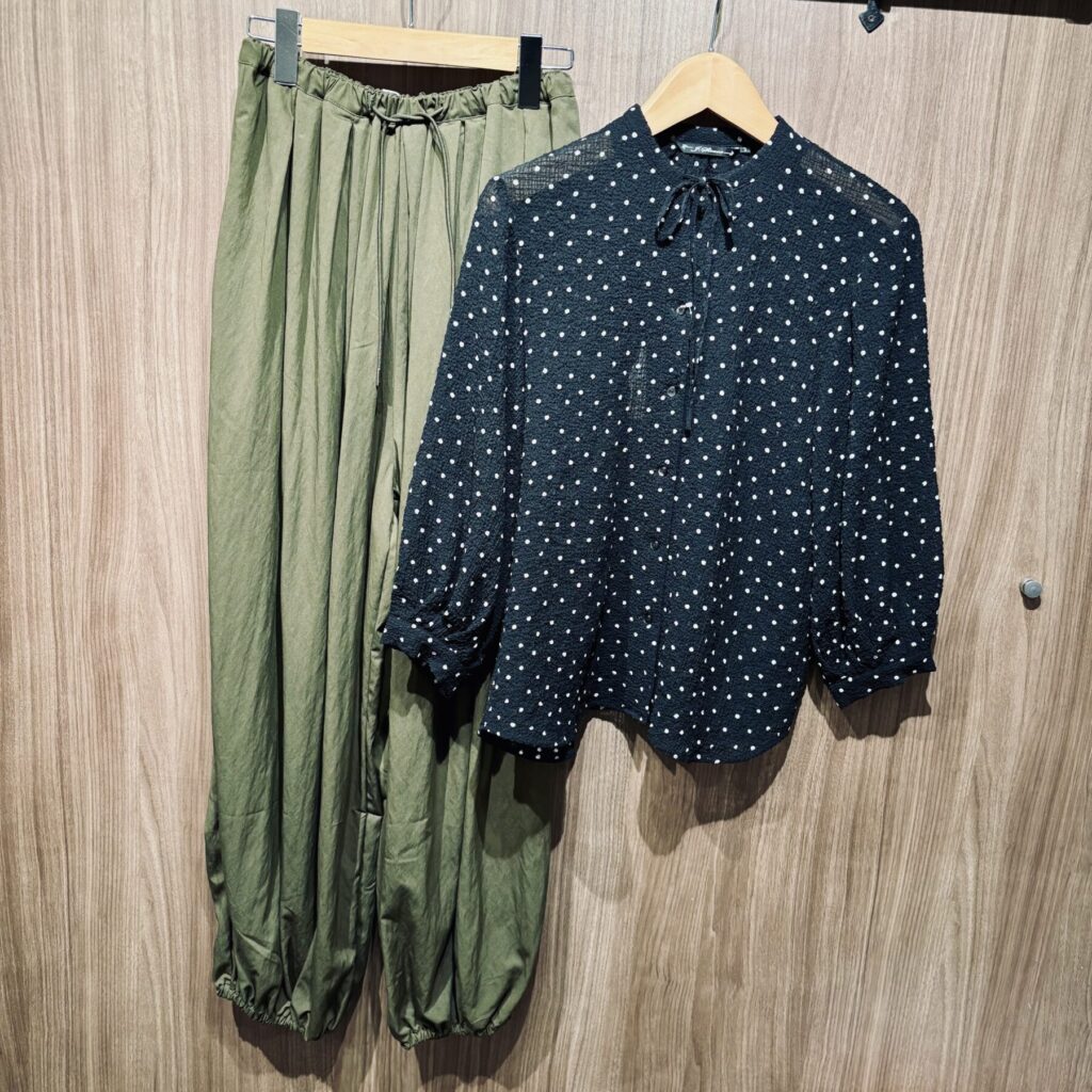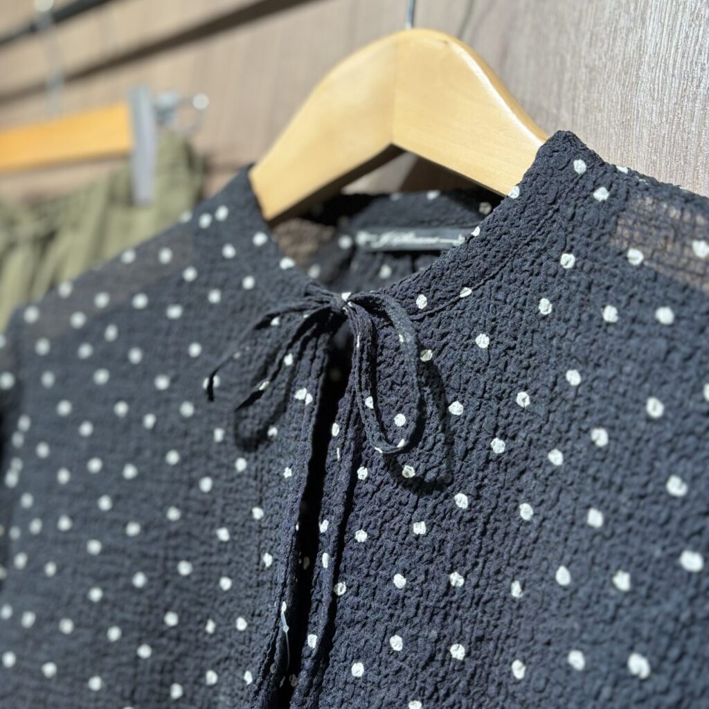 ドットブラウス&バルーンパンツ 2026.04.12 アイテム紹介 2026.04.12 凹凸のあるさらりとした生地のドットブラウス 16,500円 アイロンいらずの着やすさが嬉しいです! KELEN バルーンパンツ 16,940円 オシャレなカーキグリーンは万能です。 リネンシャツ&デニム 関連記事 キャメル色コーデ ゆったりTシャツ カラーパンツ ボーダー切り替えニット