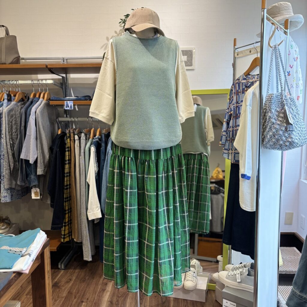 ニットベスト 2026.04.18 アイテム紹介 2026.04.18 今の時期にピッタリな、 ニットベストのコーディネート 春らしいミントグリーンのニットベスト ネックラインがきれい 13,200円 透け感がオシャレなチェックスカート 16,500円 明るい色が着たい季節ですねー(^^) バンダナ柄ブラウス 関連記事 卒業入学セレモニースタイル ロゴゆるTシャツ ティアードブラウス ニットワンピース