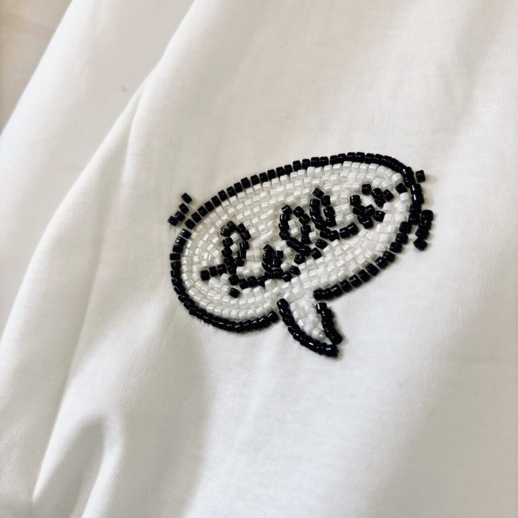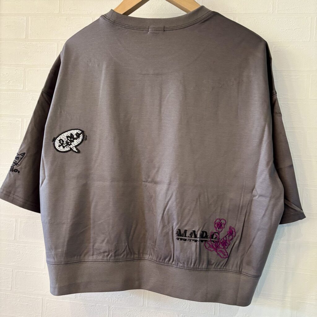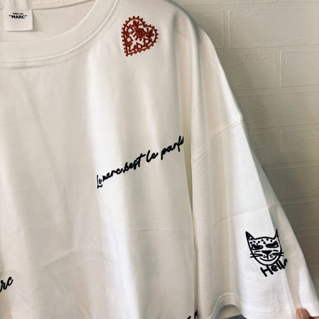 ロゴ刺繍Tシャツ 2026.04.19 アイテム紹介 2026.04.19 遊び心のあるロゴ刺繍が可愛いTシャツです❗️ 13,200円 袖には、さりげなくネコちゃん バックスタイル ビーズ使いも目を惹きます❤️ 色違いはグレー 大人が着たいこだわりTシャツです(^^) ニットベスト 関連記事 ストライプシャツ 小物いろいろ入荷♪ Recipe サンダル 3型 メッシュ⭐︎ジャケット