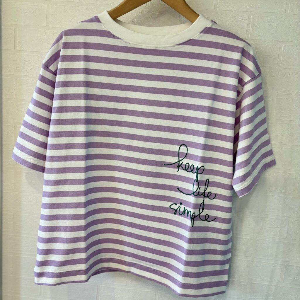 ボーダー✖️ロゴ刺繍 2026.04.27 アイテム紹介 2026.04.27 BLUE LAKE MARKET より カラフルなボーダー×ロゴ刺繍のTシャツ 10,780円 夏に向けて気分が上がりますよー! 今回も素敵なお花が届きましたー(^^) リバティ*Tシャツ 関連記事 冷んやりデニム 異素材ワンピース *** フリルシャツ チェックプルオーバー